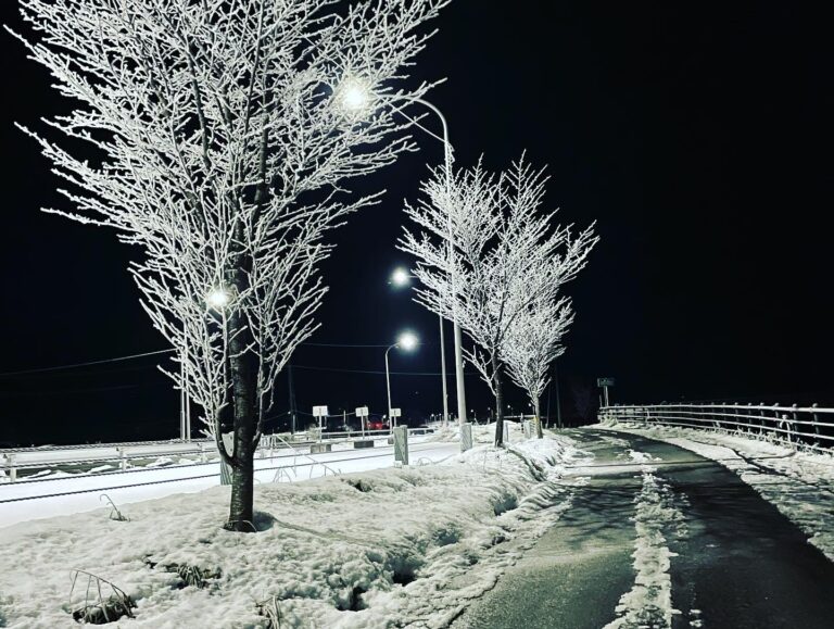 雪が咲いている街路樹がもはや芸術作品…